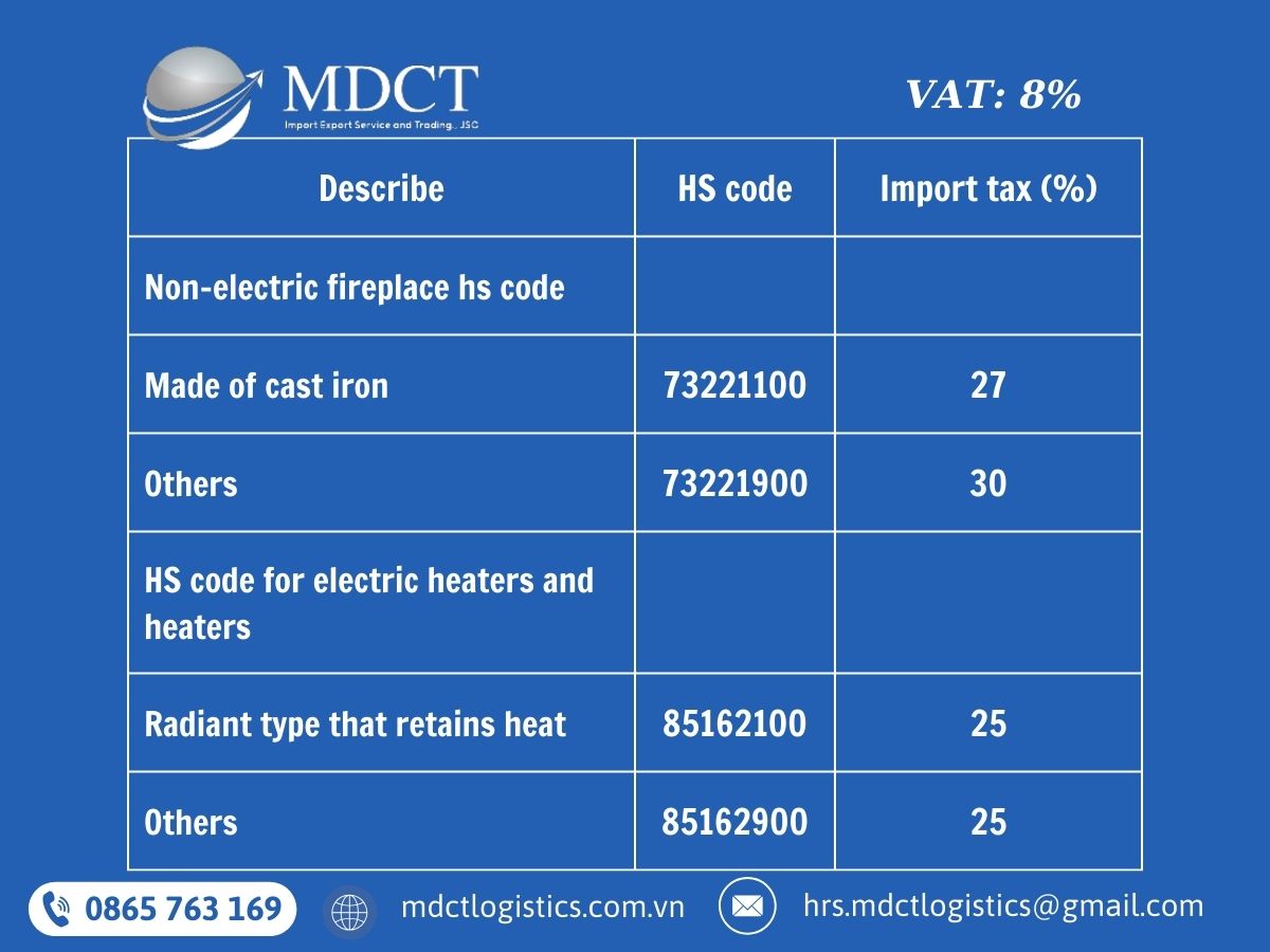 Above is the basic information MDCT Logistics sends for your reference. MDCT Logistics is proud to be a unit with experience in transporting and importing goods from China to Vietnam. Customers who need to import fireplaces and heaters, please contact hotline 0865 763 169 for advice and support.