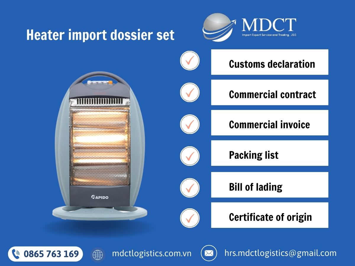 Above are all documents used to carry out import procedures for heaters and heaters. The most important are customs declarations, commercial invoices, and bills of lading. Other documents will be added if requested by the Customs authorities.
