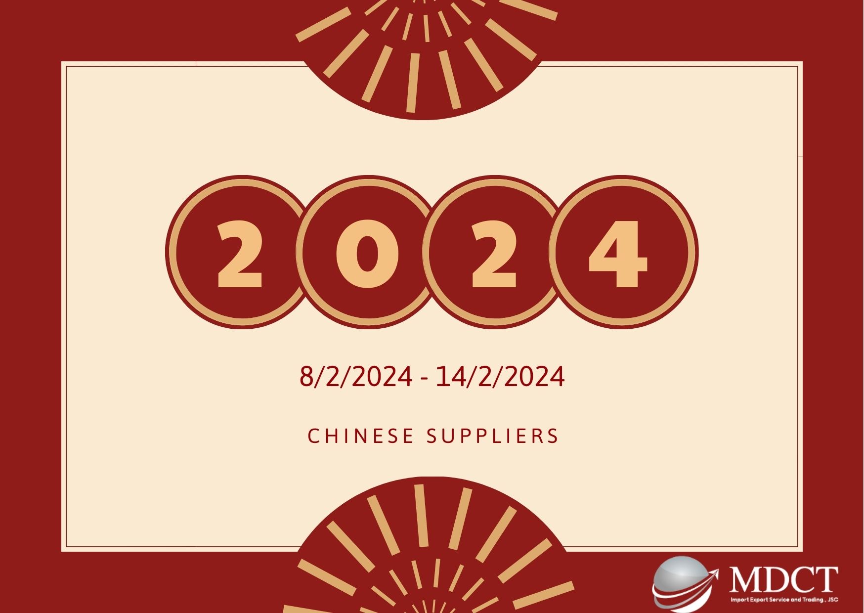 TET HOLIDAY SCHEDULE OF CHINESE SUPPLIERS AND MDCT LOGISTICS' WAREHOUSE IN CHINA